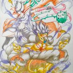 おはようございまーす!!! 過去作の番長ズじゃー!おらおらー! コピックで下地まで塗って、色鉛筆で仕上げました👹バンリリのボディがセクシーに塗れたぁ!🤩 #デジモン #Digimon #illustration #フォローしてもらってもいいですか