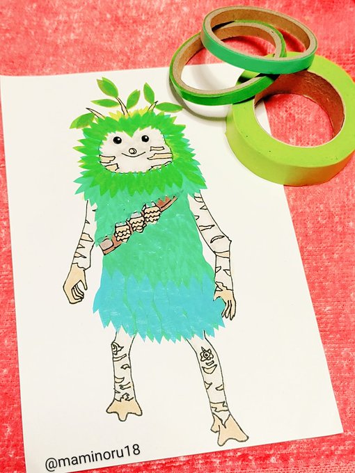 フォートナイトのブッシュレンジャーの貼り絵完成しました〜🌿✨ マステの貼り絵です🎶 葉っぱの形に切り抜いていっぱい重ねました!! #フォートナイト #フォートナイト美術部 #フォートナイトイラスト #ハンドメイド #マスキングテープ #マステ絵 #マステ