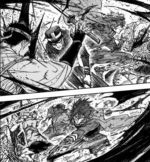 #フォーロン・ホープ ちょい話👮♂️ 小言を言い合ってたと思ったら凄絶ツーマンセルをおっぱじめる拓磨と礼仁郎。 ネームの500倍カッコ良く描いてくださったTAKUMI先生の筆力をご覧ください。