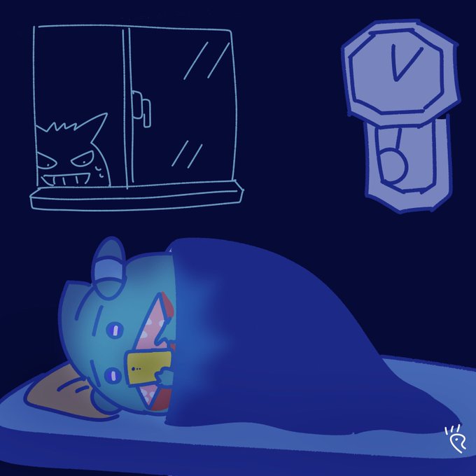 フカマル100日チャレンジ80日目 【寝たら明日になっちゃう‥と、ついついスマホをいじるフカマル】 #1日1絵 #なで肩うさぎの1日1絵 #イラスト #フカマル100日チャレンジ #ポケモン