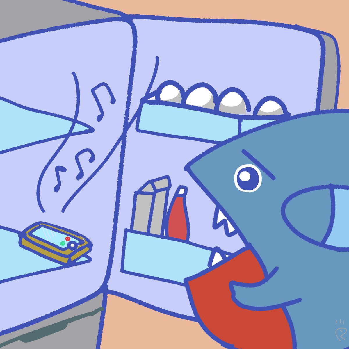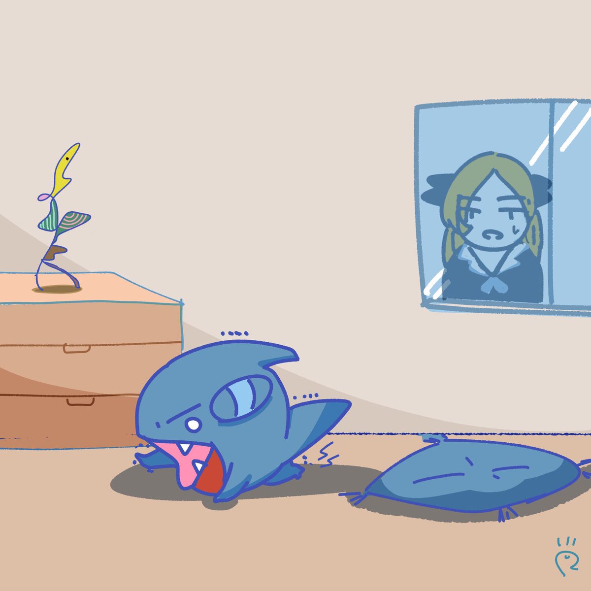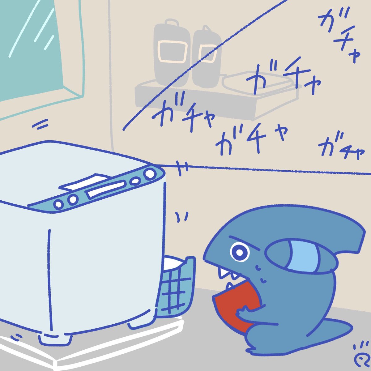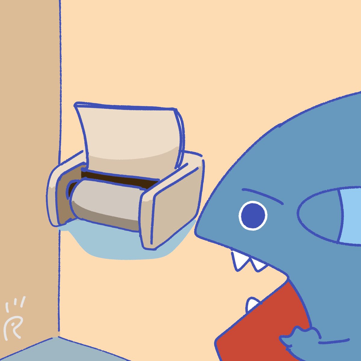 フカマル100日チャレンジ91日目 【トイレットペーパーが切れていて終わったなと絶望するフカマル】 #なで肩うさぎの1日1絵 #1日1絵 #イラスト #フカマル100日チャレンジ #ポケモン