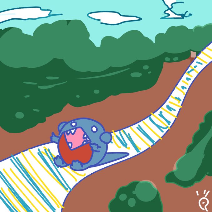 フカマル100日チャレンジ98日目 【めちゃ長いゴロゴロ付き滑り台を下るフカマル】 #フカマル100日チャレンジ #イラスト #なで肩うさぎの1日1絵 #フカマル100日チャレンジ #ポケモン