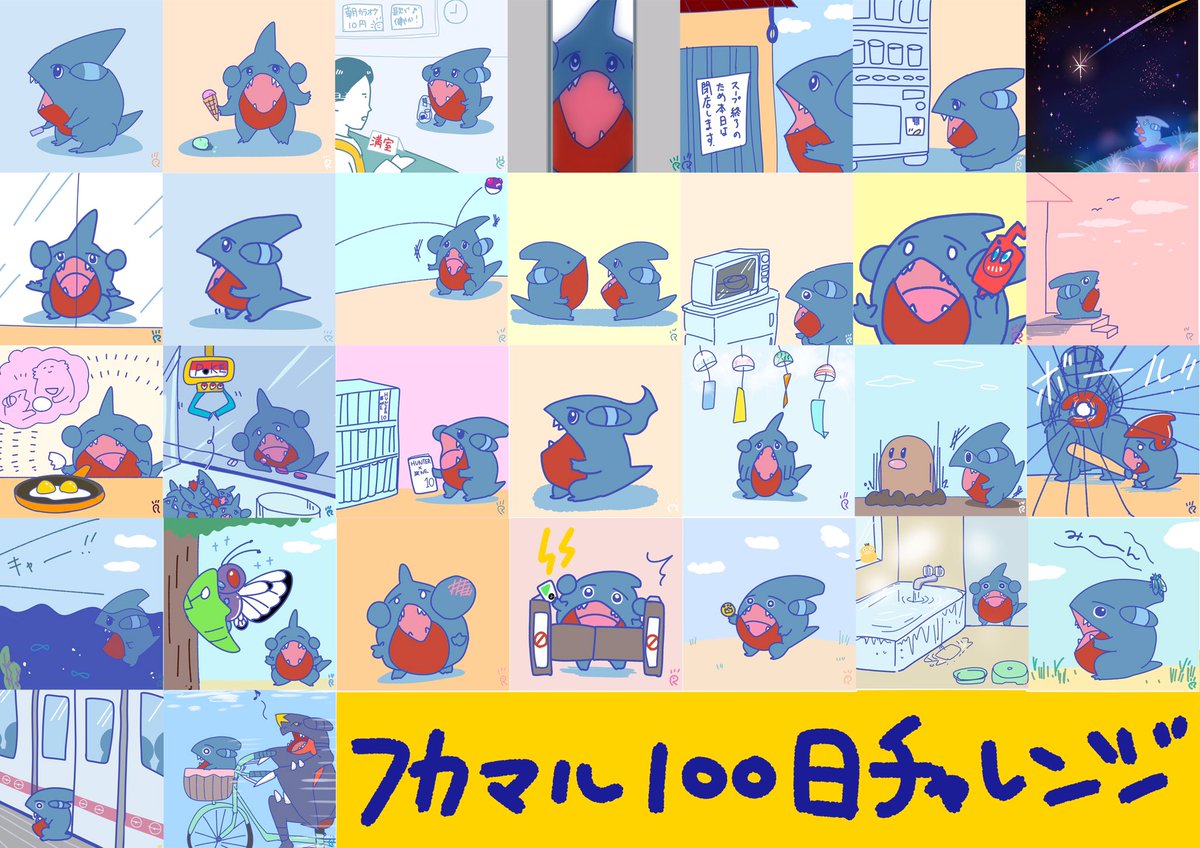 フカマル100日チャレンジ100日目…と言いたかったのですが まさかの事態で2日連続23日目というのがあり昨日100日目を達成していました😂 本日101日目【シロナさんと遊ぶフカマル】 101日間ありがとうございました! #1日1絵 #なで肩うさぎの1日1絵 #フカマル100日チャレンジ #ポケモン #イラスト