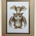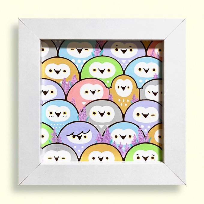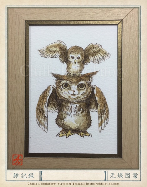 この作品はポストカードとステッカーもあります ステッカーははんなりho-ho-の時の歯ちゃんの物より1センチ大きいです♪ ざび絵ステッカー 増やしてあちこち貼ってね❁ #箱の中のカーニバル #個展 #フクロウ #イラスト #illustration