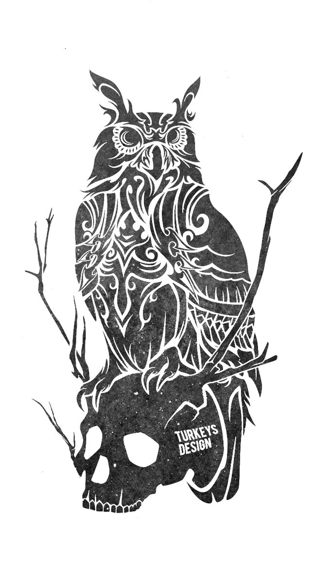 夜空を超えて。 死者や異世界の通信が出来る、死からの守り神、とされる意味から、ガイコツと一緒に描かれる事が多いフクロウをトライバルデザインで表現。 #フクロウ #猛禽類 #梟 #トライバル #スカル #トライバルタトゥー #アート #グラフィックデザイン #イラストレーション #art #tribaltattoo