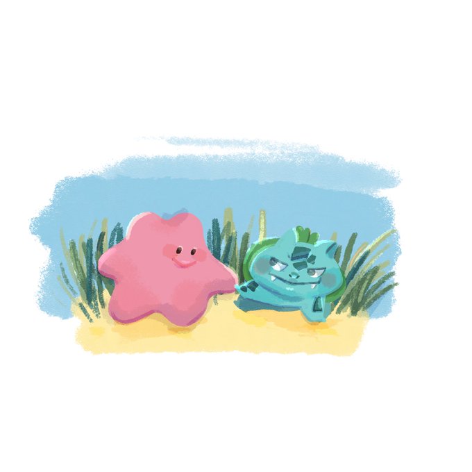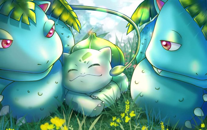 おや? ドーブルが何やら描き始めたようだ🤔 最初のポケモンはフシギダネかぁ🤨 #イラスト #ポケモン #Pokemon #フシギダネ #illustration #アイビス twitter.com/san_muro3/stat…