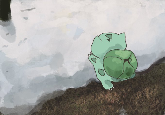 親に憧れて花を飾るフシギダネ。 ポケモンカードコンペ残念ながら通りませんでしたが、どうしても描きたかった構図が描けたので満足😌🍃 素敵な機会ありがとうございました! #PTCGIC2022 #フシギダネ