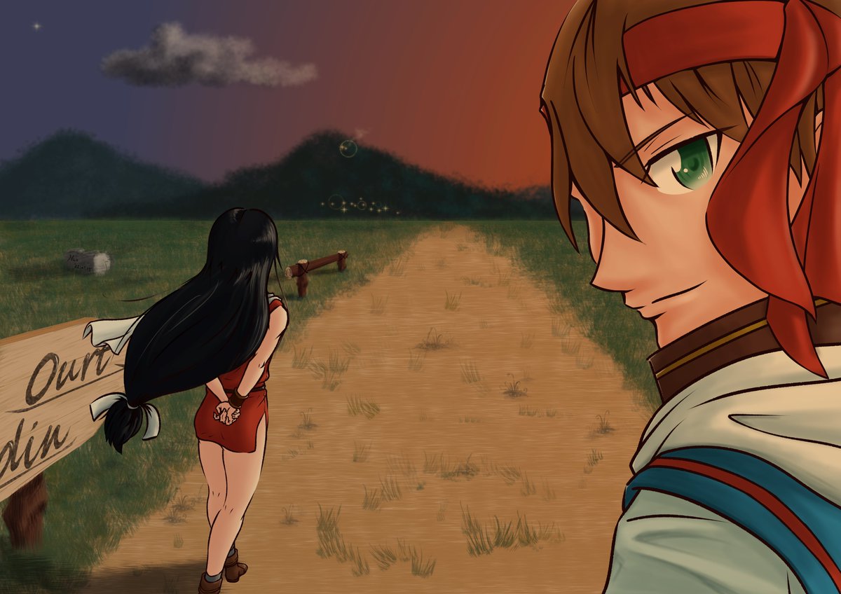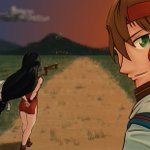 #今月描いた絵を晒そう ①描き初め絵。もっと赤い空にする予定がウルトの方が東と気づいてギリ南向きぐらいに脳内設定変更。 ②桃衣先生の誕生日記念。元ネタを知らないと完全に意味不明で満足。ツイート時はパース狂ってたので微修正。 #絵描きさんと繫がりたい #朱紅い雫 #フタコイオルタナティブ