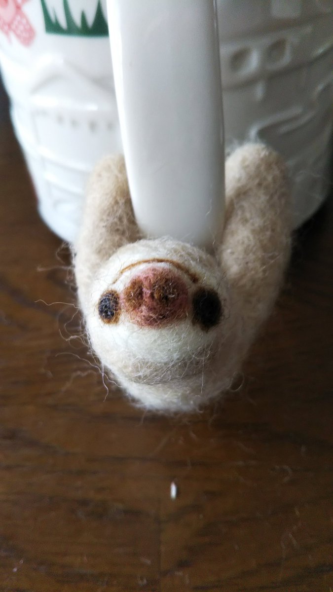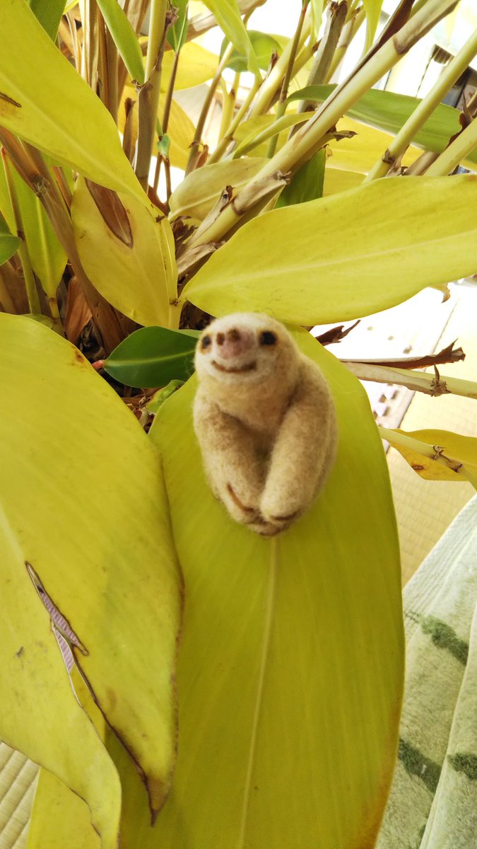 フタユビナマケモノ強化月間?! 2月だから?? なぜだかフタユビばかりつくってる。 これはサンキャッチャーにします。 この調子だと来月はミユビ強化月間か?! #羊毛フェルト #ナマケモノ #フタユビナマケモノ