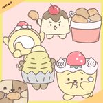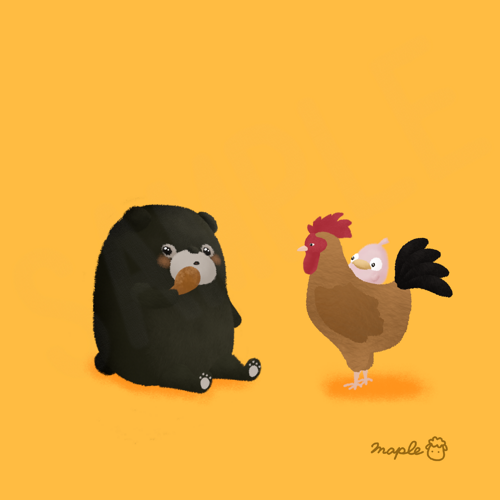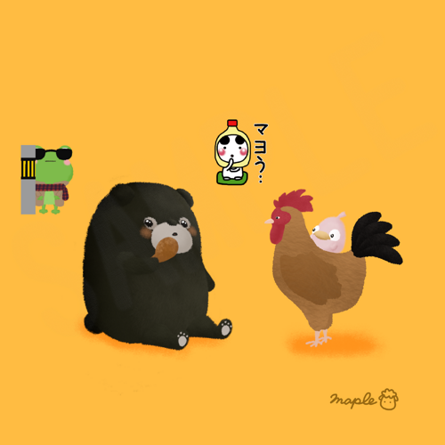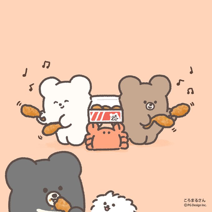 今日はフライドチキンの日だそうです☺️🐻🍗👀🐥🐥 #イラスト #illustration #digitalart #OC #今日は何の日 #フライドチキンの日 #アトリエの系譜 #LINE絵文字 #お絵描き #鳥 #くま #カエル