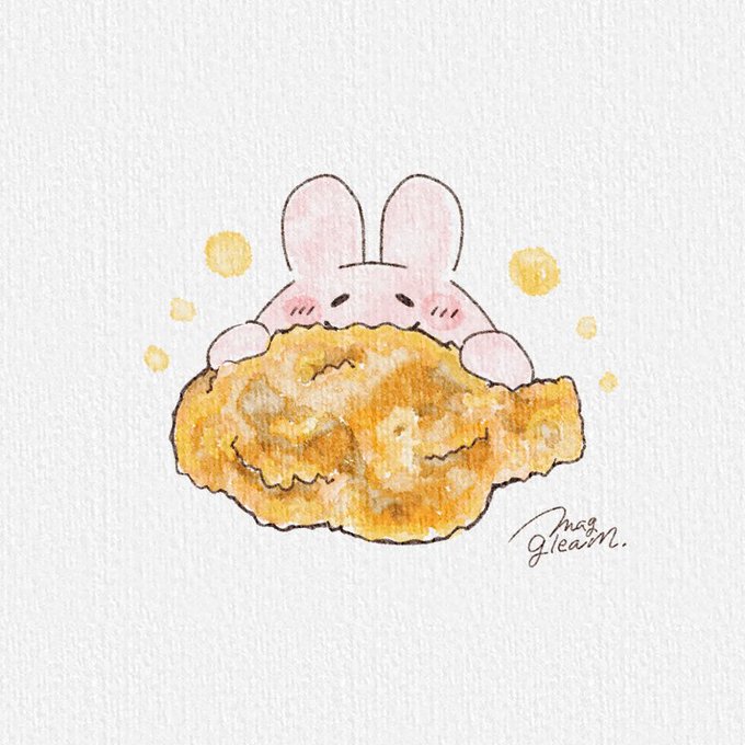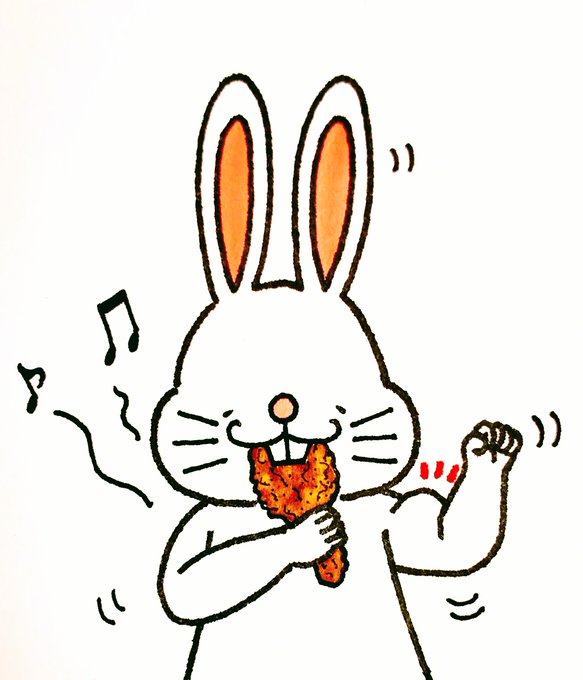 こんにちは!🌈👀 前歯うさぎさんです🐰🥕 今日はフライドチキンの日✨ 【フライドチキンパワー!🍗 ~チキンでムキムキ💪~】 #イラスト #前歯うさぎ #イラスト好きさんとつながりたい #絵描きさんと繋がりたい #絵柄が好みって人にフォローされたい #illustration #design #フライドチキンの日