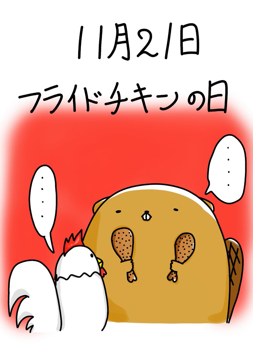 何の日ビーバー74日目🦫 11月21日は #フライドチキンの日 🍗 今度の29日はいい肉の日なので、フライドチキン食べたいし今日もフライドチキン食べたいっ🐔 なんなら毎日食べたい🦫゛ #イラスト #illustration #アメリカビーバー #絵描きさんと繋がりたい #イラスト好きな人と繋がりたい
