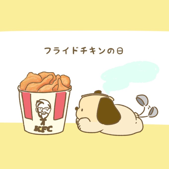 今日のたぬき フライドチキンの日ー 日本でKFC1号店がオープンした日らしいっすよ(1970年) ワイは骨しゃぶるのが苦手なので、骨なしの方が好き #イラスト #たぬき #フライドチキンの日