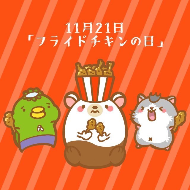 今日11月21日は 【フライドチキンの日】 1970年(昭和45年)のこの日、 愛知県名古屋市郊外に 「ケンタッキーフライドチキン」 日本第1号店がオープンしたんだって たまに無性に食べたくなりますよね... お腹すいた😑 #フライドチキンの日 #ゆるいイラスト #イラスト #絵描きさんとつながりたい