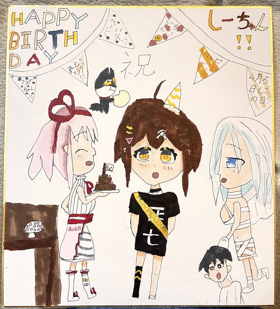 遅くなりましたが、しーちゃんお誕生日おめでとう🎉✨ これからも元気なしーちゃんでいてください🤗⭐ #イラスト好きな人と繋がりたい #絵描きさんと繋がりたい #フラグちゃん生誕2022 #フラグちゃん #フラグちゃんed