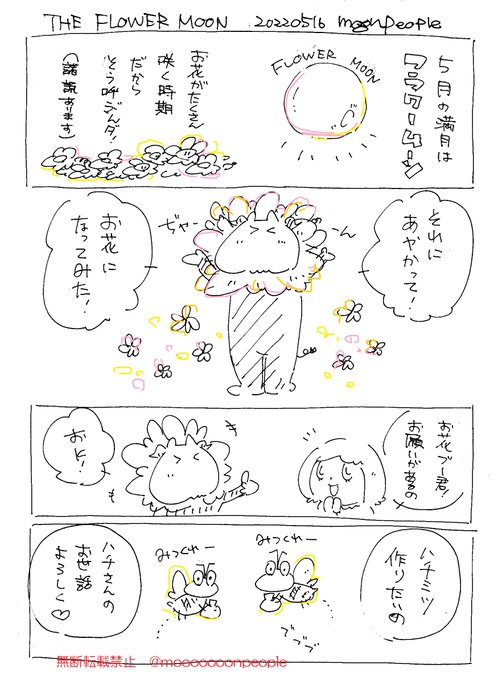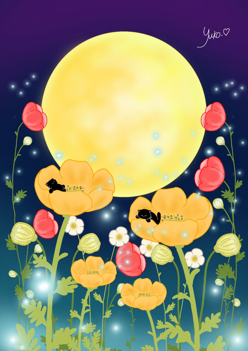 月は好きでよくモチーフに入れています。ピンクムーン、コールドムーン、ウルフムーン、バックムーン…そして本日5月6日はフラワームーン🌕💐 #ゴールデンウィークSNS展覧会2023 #フラワームーン