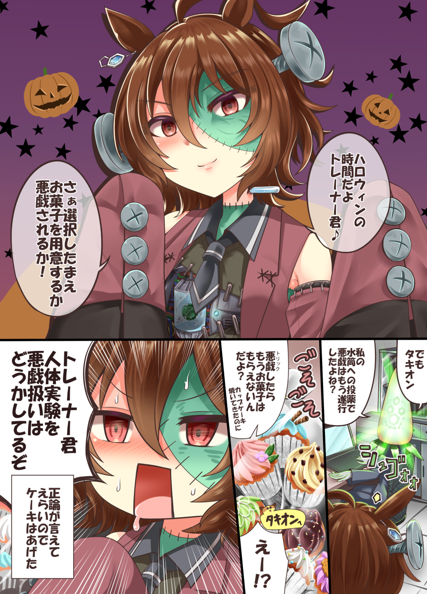 トレーナーVSハロウィンアグネスタキオン #ウマ娘プリティーダービー #アグネスタキオン(ウマ娘) #ハロウィン #フランケンシュタイン pixiv.net/artworks/93621…