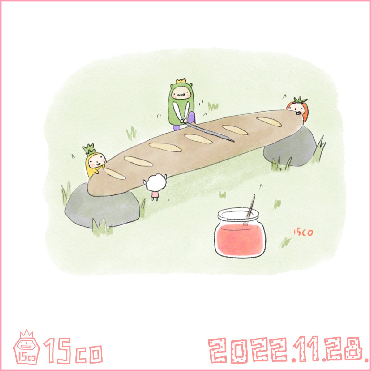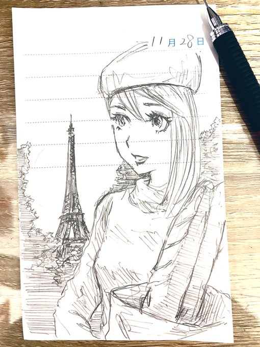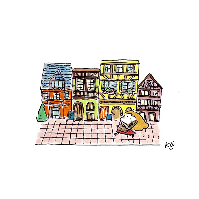 11月28日「フランスパンを持ってパリを歩きたい」 フランスパンを紙袋に入れておしゃれな街を歩く…やってみたい…✨ そしてフランスのフランスパンを食べてみたい🥖🇫🇷 #ちゅっちゃんの毎日 #フランスパンの日 #イラスト #illustration #illust #絵 #1日1絵