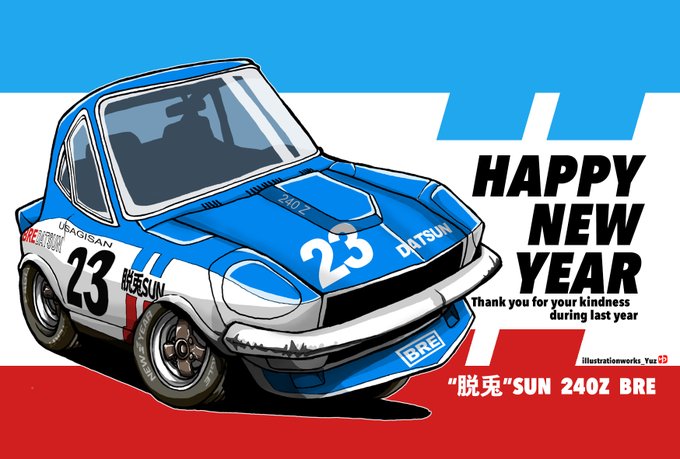 2023年フリーイラスト年賀状 "脱兎"SUN 240Z BRE クルマイラスト・反転カラーverを追加! お好きな方をどうぞ🚗🚙 無料ダウンロード↓ illustyuz.stores.jp/items/639efba2… #イラスト #年賀状2023 #フリーダウンロード #イラスト好きさんと繋がりたい