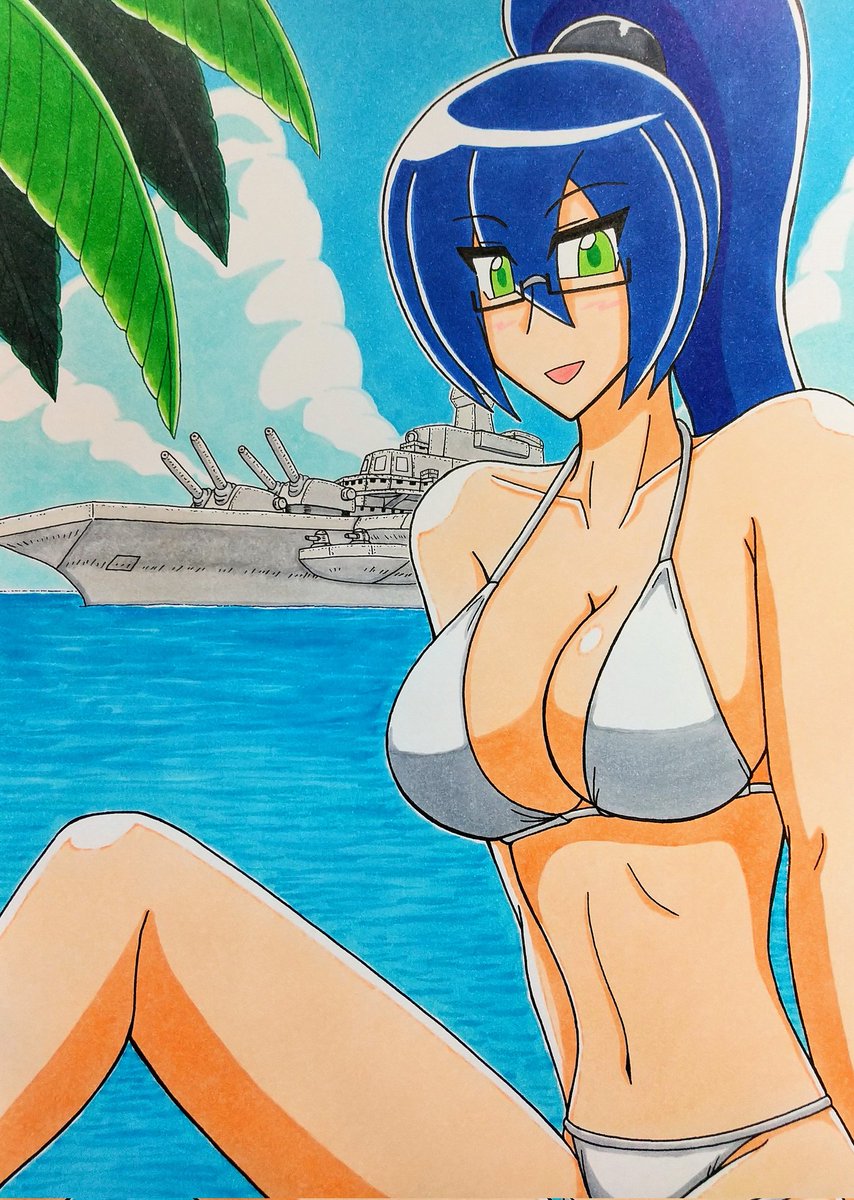 #オリジナル #フリーダム兵器庫娘 #暑中見舞い #看板娘 #コピック #pixivFANBOX 『暑中お見舞い申し上げます。(2022)』 アーセナル『夏だ!海だ!! 戦艦だ!!!』 兵士『戦艦は戦艦でも航空戦艦ですけどね』 アーセナル『細かい事は気にしない!』