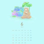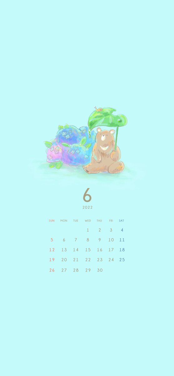 6月のスマホ用フリー待ち受けを制作しました! 雨上がりのくまさんです🧸 保存してぜひご活用ください( ¨̮ )! #イラスト好きな人と繋がりたい #イラスト #フリー待ち受け #カレンダー #梅雨 #あじさい #illustration