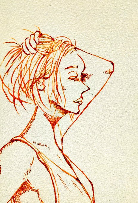 肌色を探求と言いつつペン入れ完了作🌟Gペンの先が傷んできたようで買い換え時か🍀インクはターナーのアクリル絵の具、影はuniのprockeyを使いました💕さあ塗るぜ! もし塗っていただける方がおられたらぜひぜひ🖌リプにモノクロ作も付けておきます #イラスト #絵描きさんと繋がりたい #フリー線画