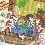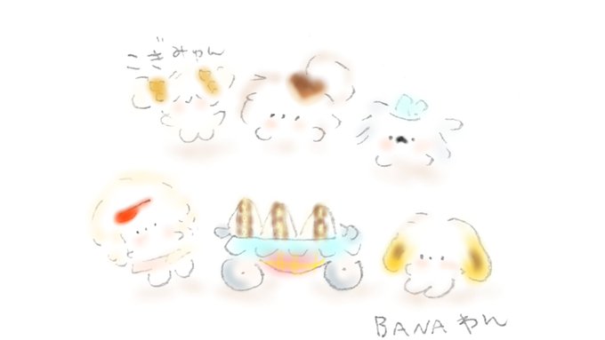 Hello💙バナバニー🍌🐰フレンズ ←こぎみゅん こなミミィ→ 「マルシェのパン屋さん」 BANAわん🐾登場🙀‼️ チョコバナナフルーツサンド下さい! #絵描きさんと繋がりたい #サンリオ推しキャラ #こぎみゅん #フルーツサンド