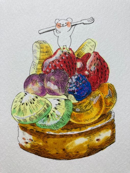 色鉛筆で描いた、 「フルーツタルト」🥝🍓 イロドリアルさんの、 「色鉛筆画上達ドリル(基本編) P.32〜37 フルーツタルトを描く」 を参考にして描きました✨ #色鉛筆画 #フルーツタルト #色鉛筆画上達ドリル基本編 #今月描いた絵を晒そう #coloredpencil #coloredpencildrawing