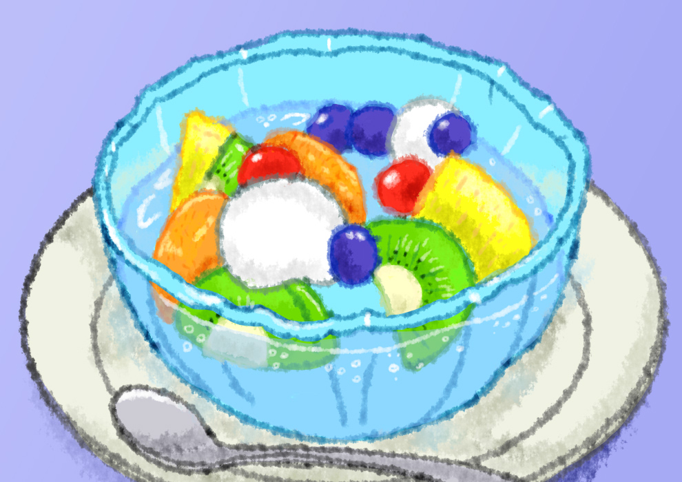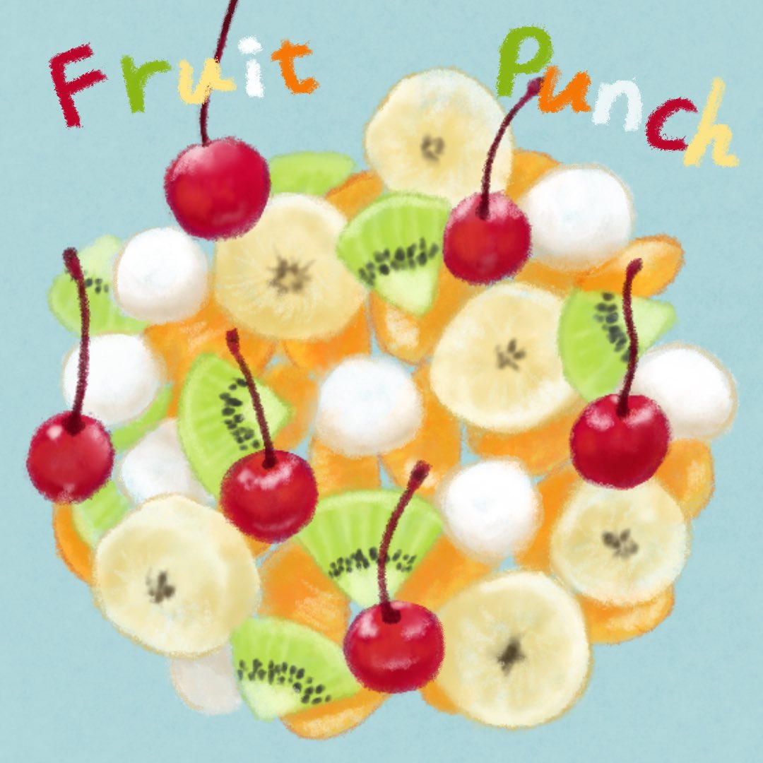涼し気なフルーツポンチとスイカのテンプレートです。 えっ? 季節外れだって? 来年の夏に使ってほしいな。 efude55.com #秋の創作クラスタフォロー祭り #フルーツポンチ #イラスト #おはようございます