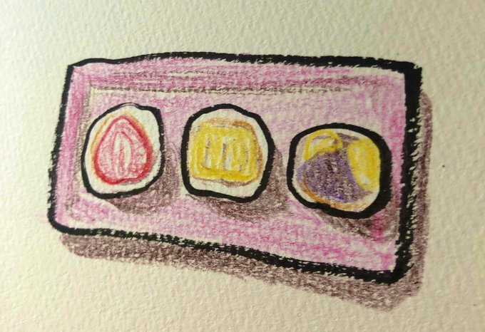 フルーツ大福を描いています🍓⚪️ 大きなブドウが1粒入ったフルーツ大福が気になります🍇💕右下はパインです🍍 #フルーツ大福 #スイーツ #イラスト #イラストレーター #illustrator #illustration