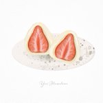 いちご大福🍓粒あん、こしあん、白あん、生クリーム、あん無し、色々あるようなので好みで選ぶのが楽しいですね🌸🍓💕 #いちご大福 #フルーツ大福 #クリーム大福 #いちご #スイーツ #和菓子 #イラスト #sweets #strawberry #illustration #art #adobefresco