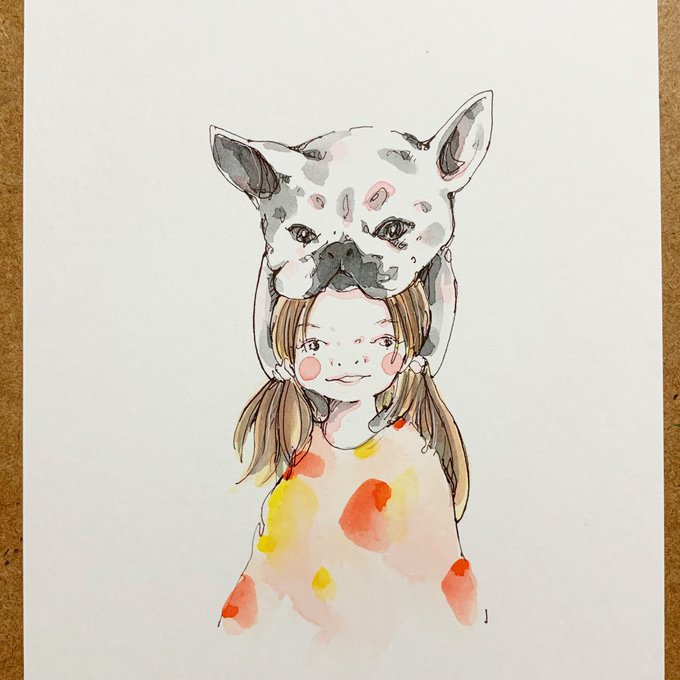 イラスト描きました。 鼻ぺちゃトリオが 河川敷で草野球見学。 #ボストンテリア #bostonterrier #イラスト #Illustration #シロツメクサ #パグ #フレブル #河川敷