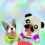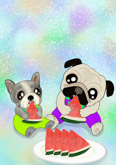 犬の日に募集した「秋の味覚を頬張るワン」の #わんこモデル 2匹目はお空組の #フレンチブルドック さつまくん リクエストは焼き芋でしたので お口いっぱい焼き芋を頬張ってる姿を描きました お空組なので羽と輪っかもつけています 向こうでもお腹いっぱい好きなものを食べてね #うちの子似顔絵