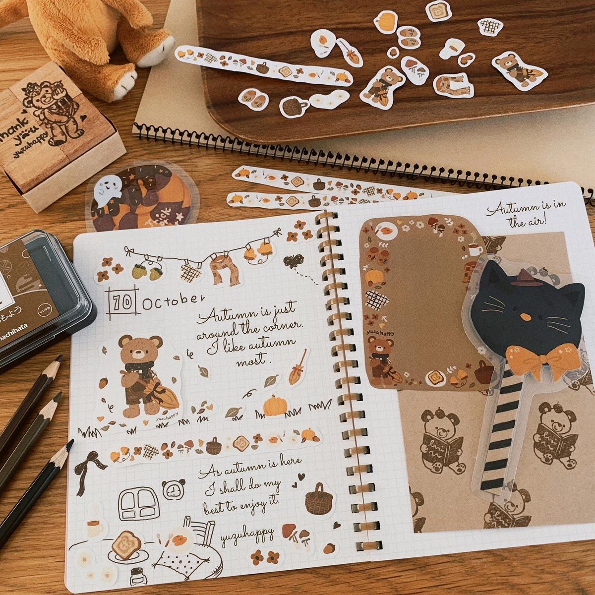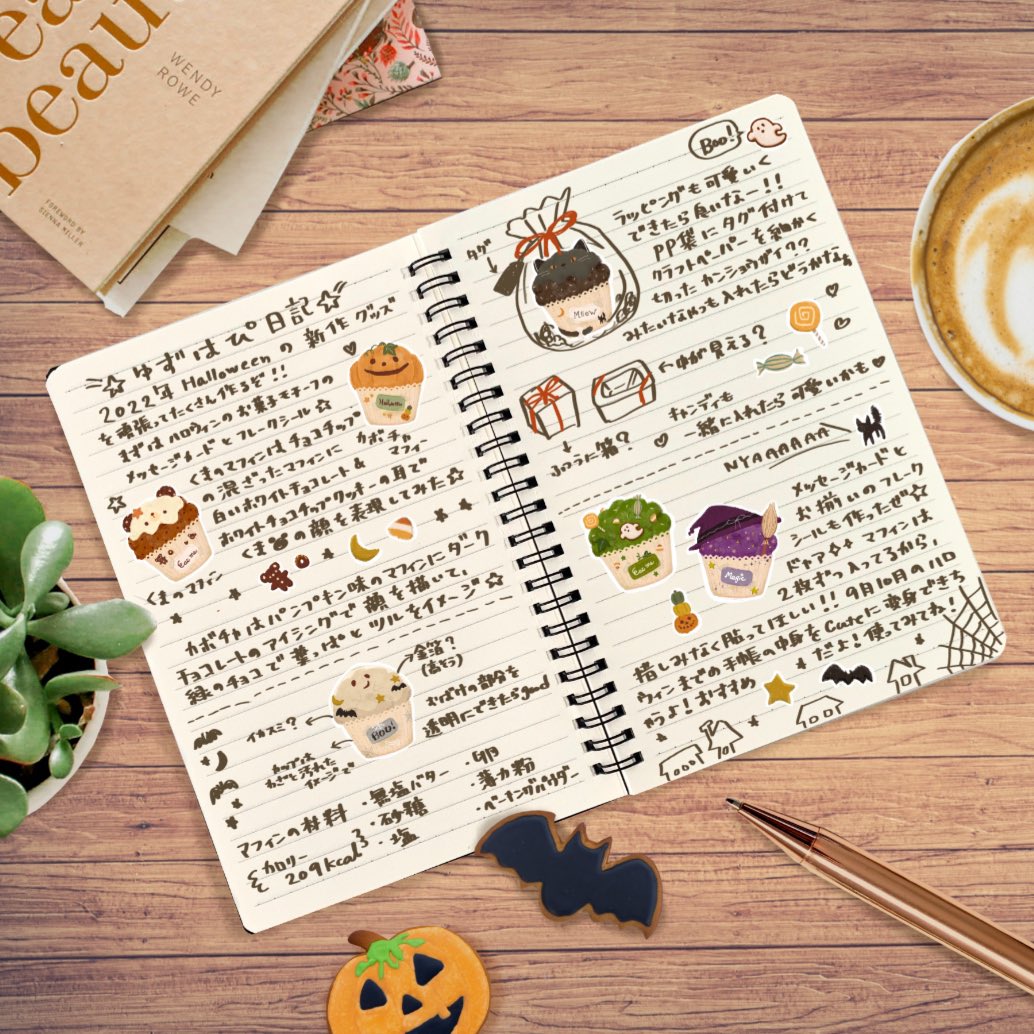 販売中のシールをノートに貼ってみました🍂 店長のおすすめ 〜ハロウィンのステッキなしおり〜 を添えて🍽 秋のシールやメモなど様々売ってます! minne&creemaへ遊びに来てくれたら嬉しいです✈︎ minne.com/@yuzuhappy831 #minne #creema #フレークシール #halloween #イラスト #文房具