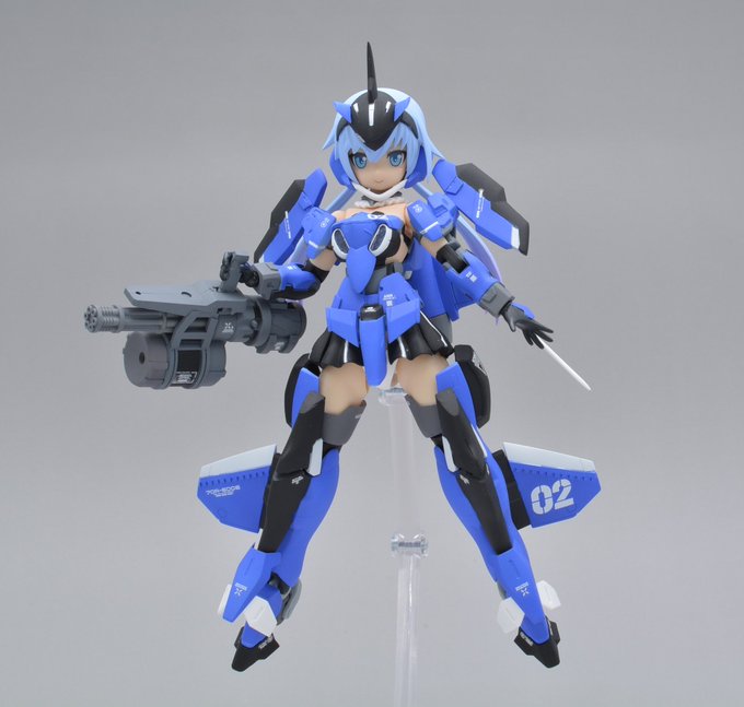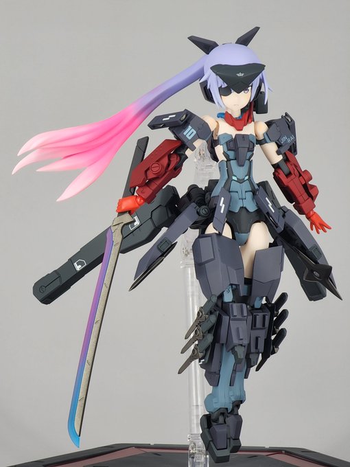 スティレット デフォルメVer. 完成しました。 スタイルの調整を行なって可愛くしたスティレットです。 ヘッドパーツはQpminiを使用。 武器はXF3に付属のガトリングガンとブレード、あとはいつものナイフです。 #フレームアームズ・ガール #スティレット