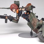 FA:G 16式機動戦闘車「香取 ナオ」完成! 「タイヤ足で爆走する忍者メカ娘」をテーマにアヤツキと1/72と1/48の16式機動戦闘車をミキシングした作品です。 戦車より軽装甲な装輪装甲車モチーフということで装甲部分は少なめ、ついでに身体はむちむちに改造してみました。 #フレームアームズ・ガール