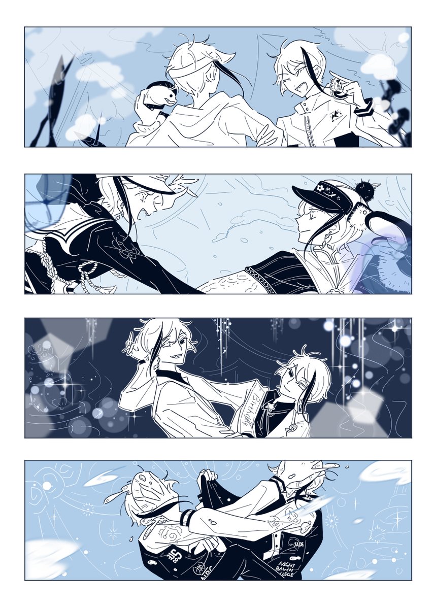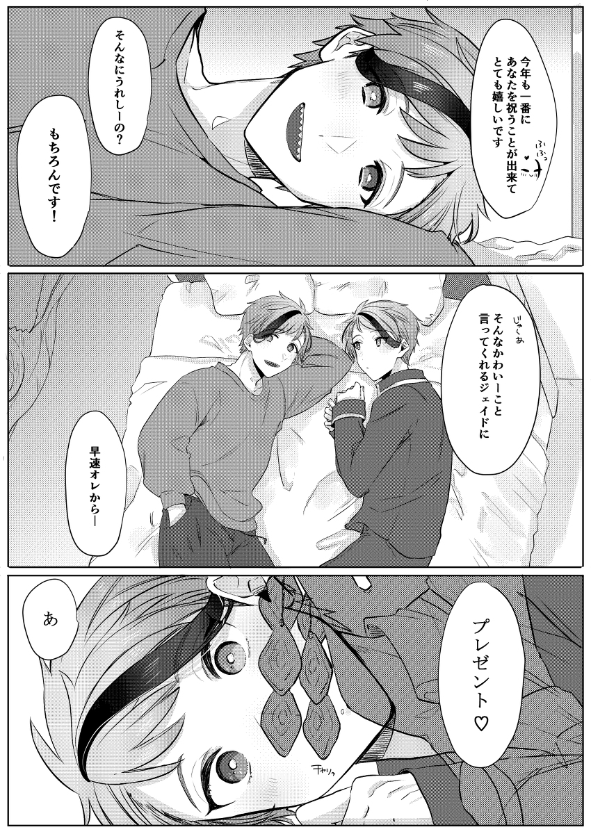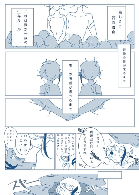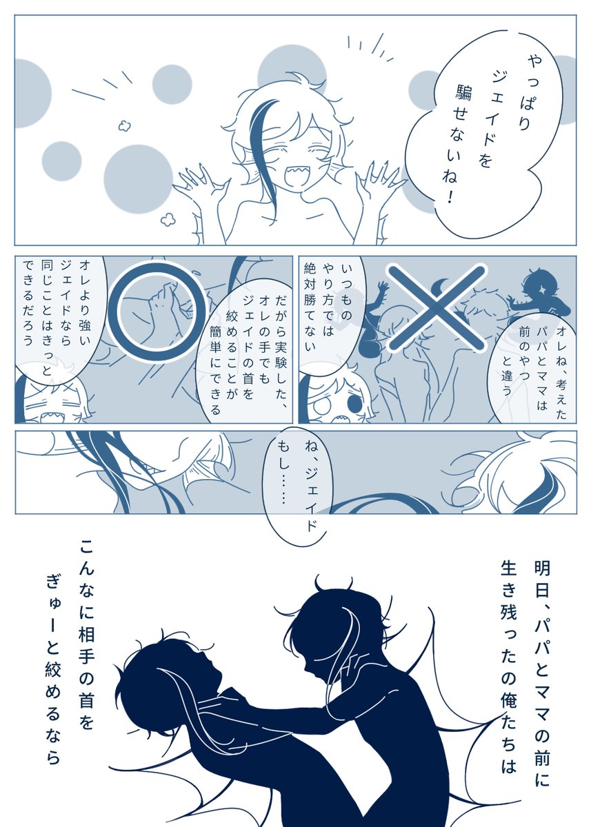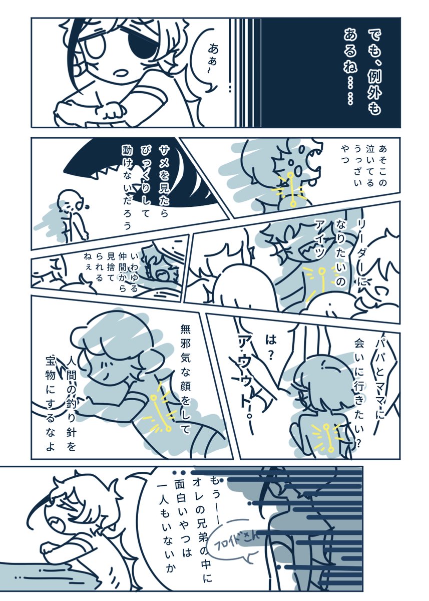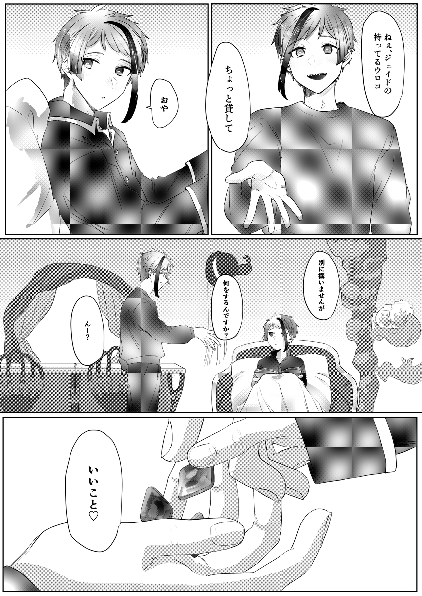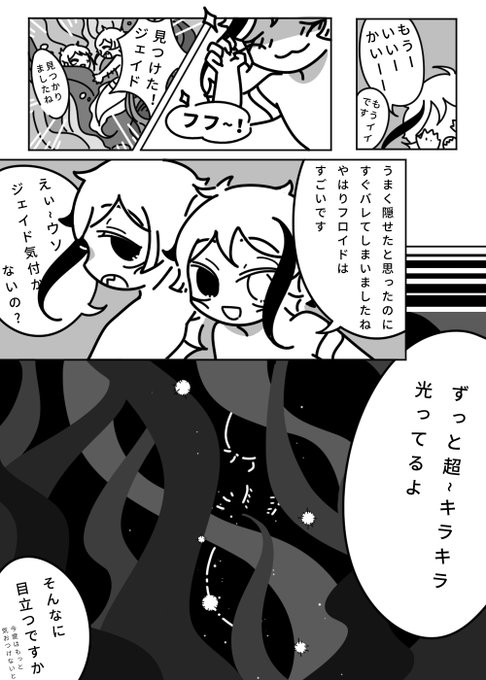 睡魔と戦うショタジェイw 🐬「いやです・・・ 負けません・・・・」 🐙「じゃあ、フロイドは完敗じゃ ないですか(笑)」 🐬「フロイドはいいんです。 ぼくが・・・(限界)」 この後、🐙に部屋真っ暗にされた 瞬間に寝たw #ツイステファンアート #ショタイド #フロジェイ