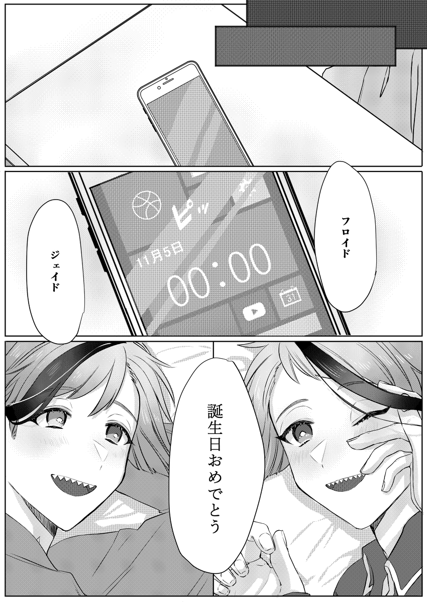 #フロジェイ誕生祭2021 #フロジェイ フロジェイ誕生日おめでと〜〜〜〜〜🎉🎉 一生仲良くいてくれ… 🐙が🦈🐬の誕生日に特別撮影会を開催した話 🐬は金を搾り取れるなら結構平気で要望に応えそうなイメージ