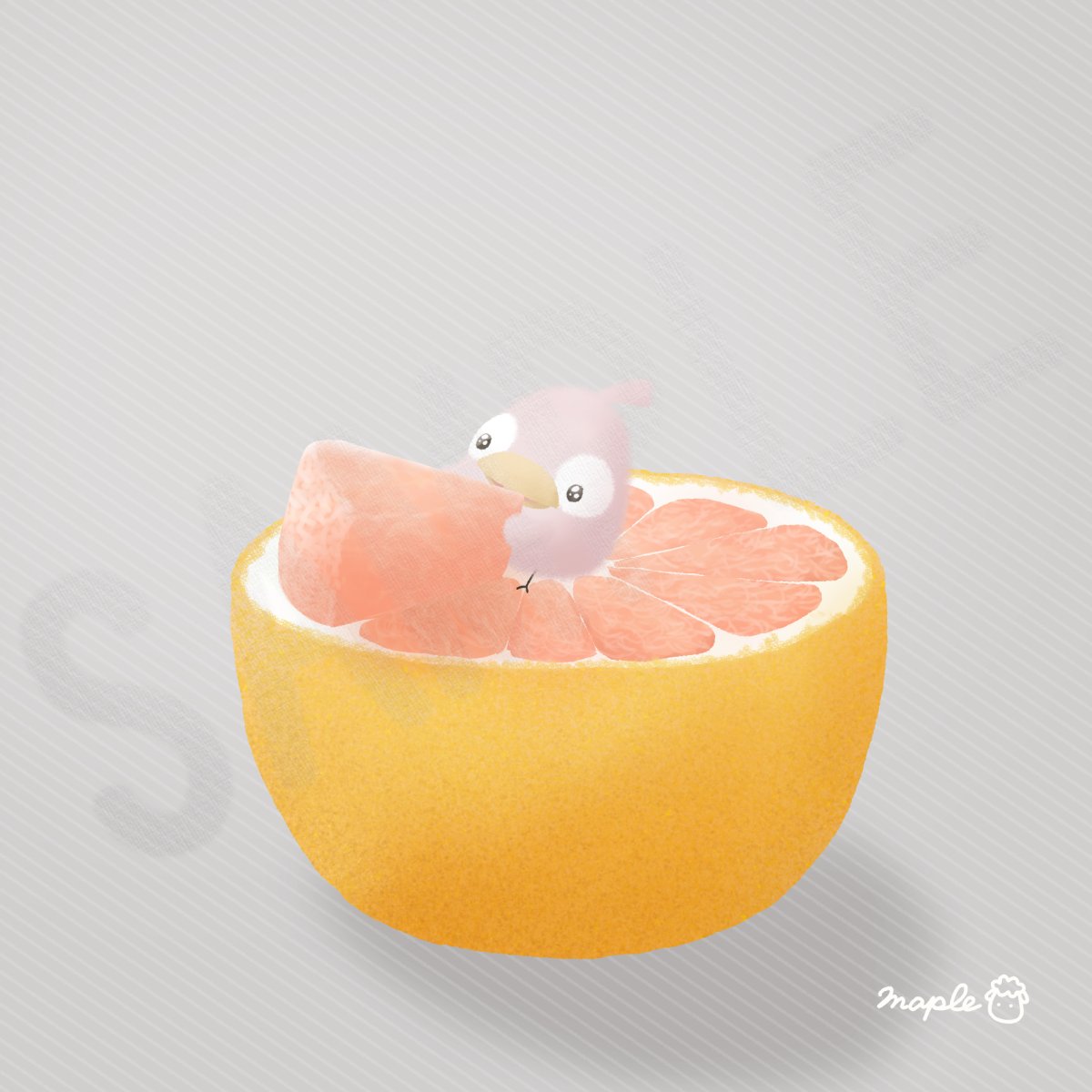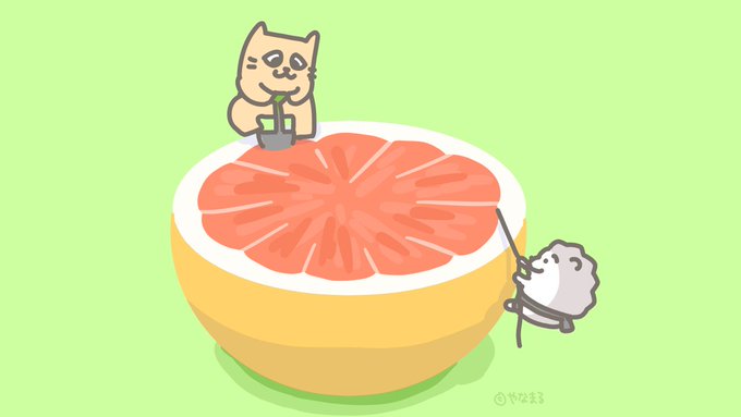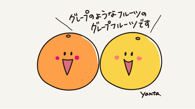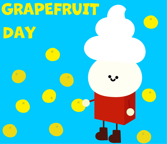日本だとよく夏場に売られている柑橘系のイメージだけど、アメリカだと今が旬なんだ~! In Japan, the image of citrus fruits is often sold in the summer, but in the United States, this is the season. #今日は何の日 #フロリダグレープフルーツの日 #イラスト #illustration #くるぴょ~ん