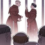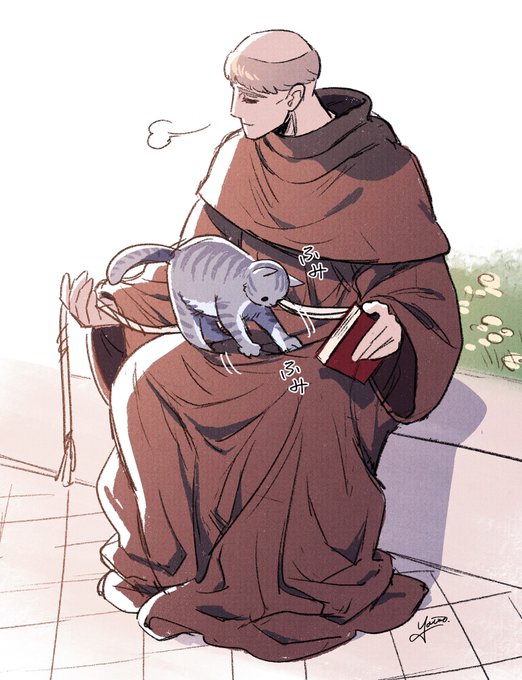 『フローラの白い結婚』は修道士もたくさん登場します。トンスラと修道服をこんなに描かせてもらえて喜びしかない……みんな読んでくれよなッ!! lin.ee/HDgWY02 #フローラの白い結婚