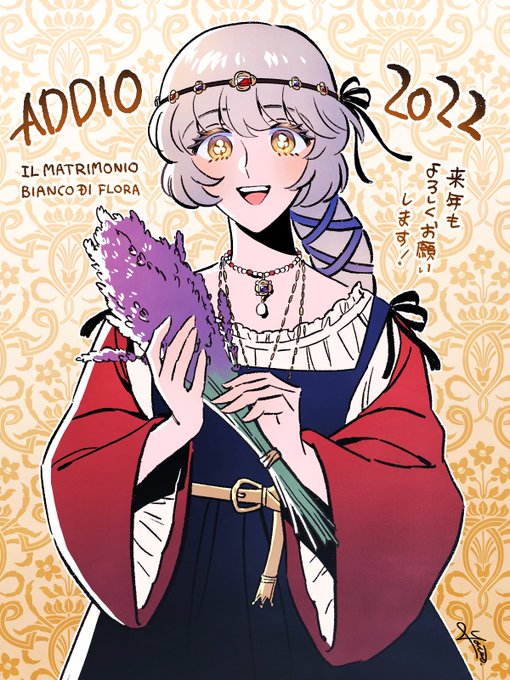 2022年の描き納めはフローラちゃん💐 今年は『フローラの白い結婚』を無事描き上げることができ、新たに学ぶことも多く大変充実した年でした。来年もどうぞよろしくお願いいたします~🥂✨ #フローラの白い結婚