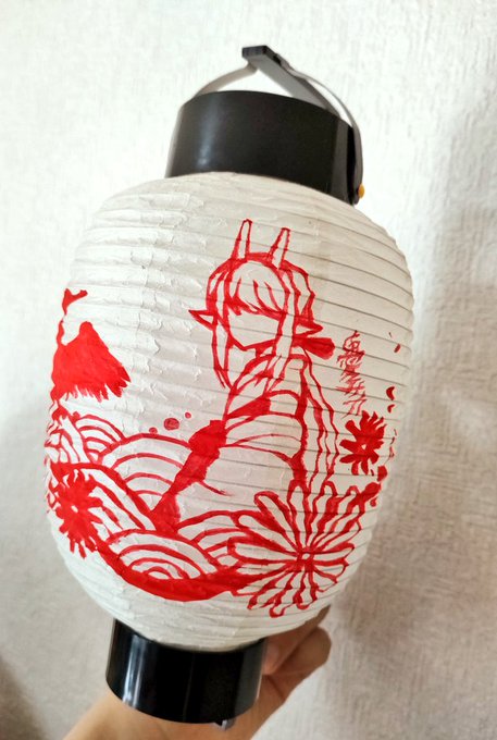 以前提灯作りと絵付けをさせていただいたこちらも本美濃和紙で出来てるので今日持っていこうかな☺️ 示し合わせたつもりないけど 同じ鬼巫女ちゃん✨ #ブイミノ #美濃市ビジュアルアート twitter.com/mihoni1027/sta…