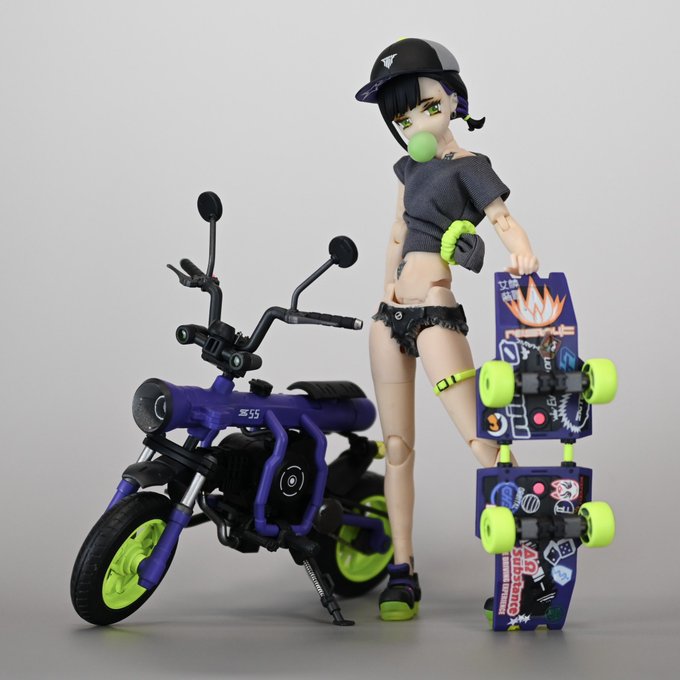 「PUNI☆MOFU トゥ ミント」 完成しました! マオに続きMARUTTOYSを用いた専用バイクと合わせて作成してます! (以下リプに続きます) #メガミデバイス #ブキヤバイク #コトブキヤバイク部