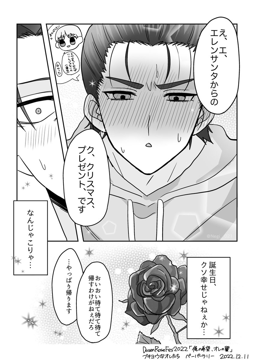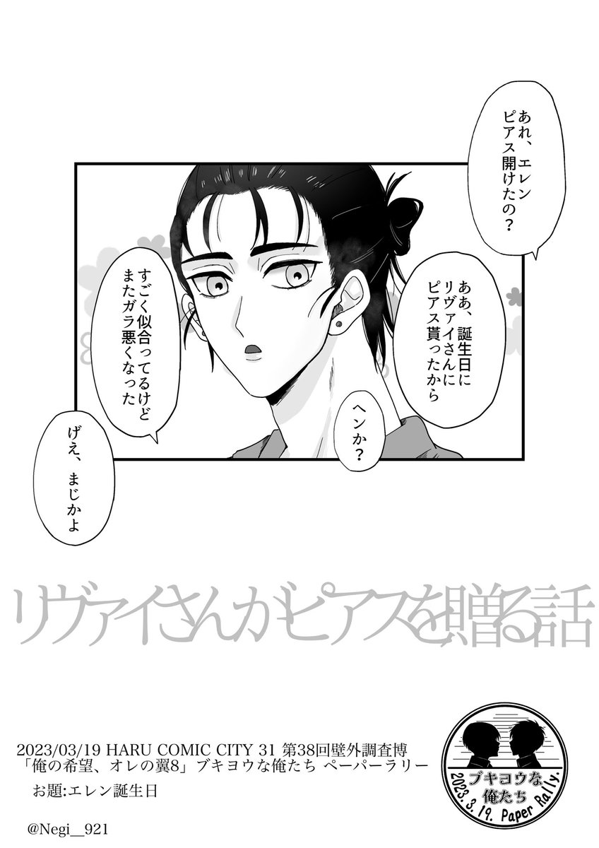 #ブキ俺ペーパーラリー せめてものオタ活。 12/11に無配してたペーパーラリーのやつです 前日深夜に描いたので内容も絵も割と酷いなと見返して思って笑ってるんだけど、こういうスタートするリヴァエレも大好物です😂😂 当日貰ってくださった皆様どうもありがとうございました〜!