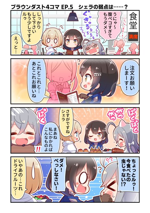【ブラウンダスト4コマ】 EP.5「シェラの弱点は……?」を公開しました! いつも完璧だけど偶に天然ボケをかましてしまうシェラザードさん 事前登録はこちらから! bit.ly/415vFT6 #ブラウンダスト2