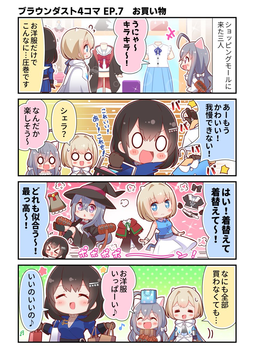 【ブラウンダスト4コマ】 EP.7「お買い物」を公開しました! シェラさんのリミッターが外れたみたいですね…。 本日からサービス開始です!おめでとうございます!! ↓のリンクからダウンロードできますので是非! bde.onelink.me/gEF1/5wmwtmr2 #ブラウンダスト2