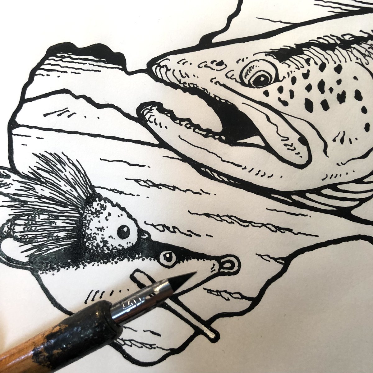 design for new sticker & Tshirts😊 まだ途中だけど新作ステッカーとTシャツ用デザインを進めています。 #ブラウントラウト #browntrout #釣り #イラスト #fishingart
