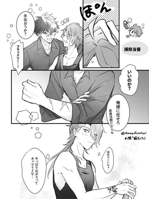 シャ「イチャつくんなら私もう行っていいです?」(ブラカイ) 髪長いし、夏だし、シャさんみたいに後ろでまとめてるところが見てみたくなりまして お題『ヘアアレンジ』 @brci_1dw #ブラカイ版ワンドロライ