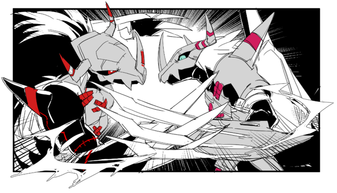 緻密な戦術を披露した後はお互いの健闘を讃え合うまでがデジカ。 #オモ写 #デジモン #digimon #デジタルモンスター #digitalmonster #ウォーグレイモン #ブラックウォーグレイモン