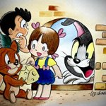 皆さま、毎日お疲れさまです!今夜は、ドラえもんと一緒にゆっくりお身体を休めてくださいね♡ #藤子・F・不二雄 #ドラえもん・のび太 #手塚治虫 #ブラックジャック・ピノコ #水彩画 #アナログ #イラスト王国